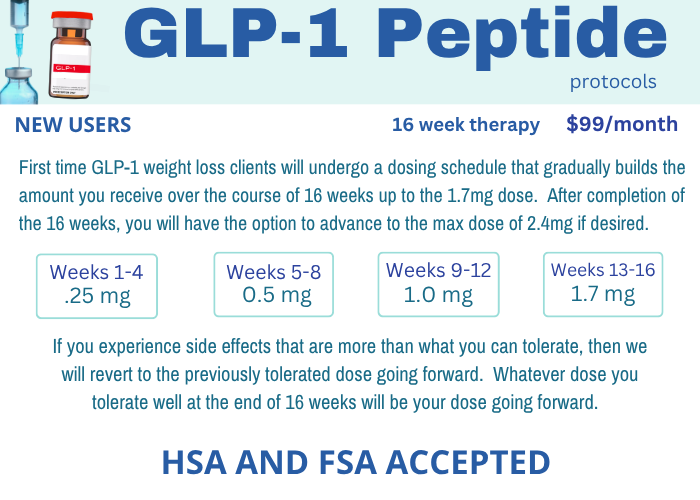 Our weekly weight loss injections are glucagon-like peptide-1 (GLP-1) receptor agonists. It mimics the GLP-1 hormone that is released in the gastrointestinal tract in response to eating. One role of GLP-1 is to prompt the body to produce more insulin, which reduces blood glucose (sugar). GLP-1 in higher amounts also interacts with the parts of the brain that reduce appetite and signal a feeling of fullness.
